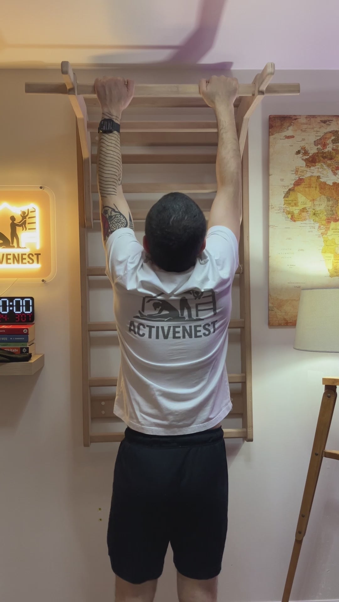 Evde spor yapmanın en doğal ve eğlenceli yolu: Activenest Premium Ahşap Jimnastik Duvarı.
